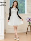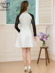 [送料無料][ERUKEI]ホワイト×ブラック・バイカラー・サテン・チュールネット・ラインストーン・長袖・Aライン・ミニドレス・ワンピース[即日発送][大きいサイズあり] [E25036]