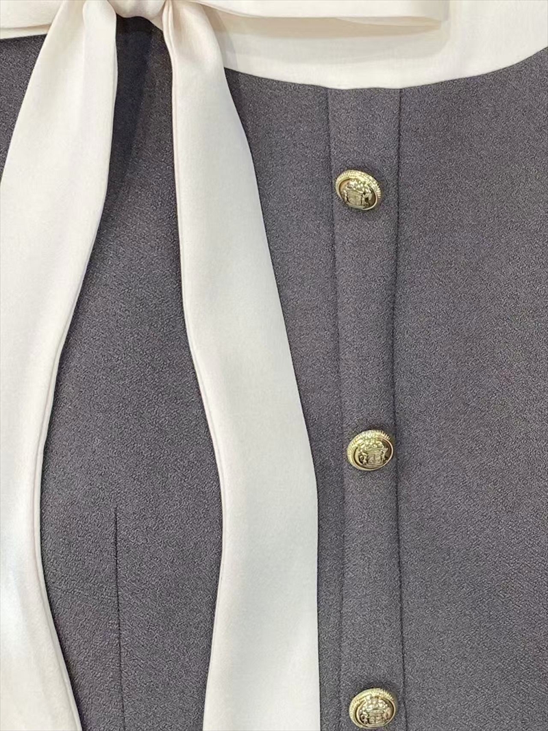 [GINZA COUTURE]イエロー ピンク アイボリー ネイビー 半袖 Aライン リボン ボタン シンプル ミニドレス ワンピース
