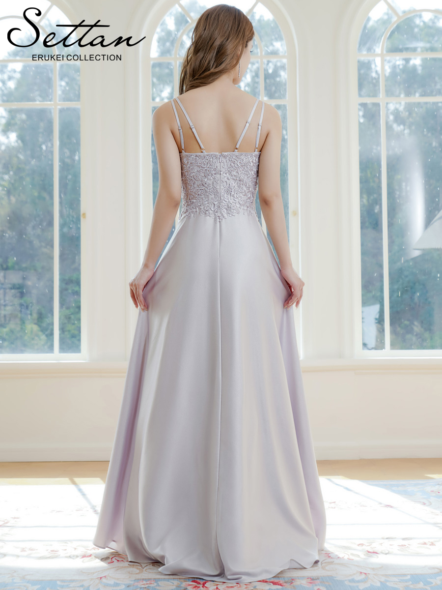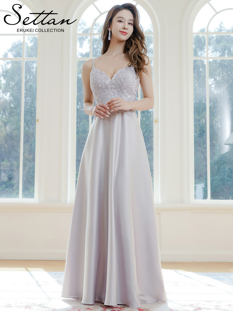 [送料無料][SETTAN]シルバー・キャミソール・ラインストーン・刺繡・レース・エレガント・Aライン・ロングドレス[即日発送][大きいサイズあり]