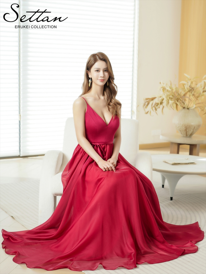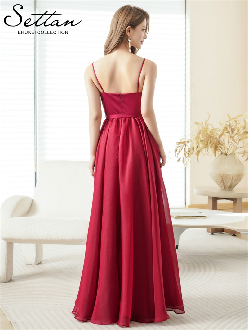 [送料無料][SETTAN]アンゴラレッド・グリーン・オレンジ・ホワイト・シフォン・ワンカラー・キャミソール・リボンベルト・Aライン・フレア・ロングドレス[即日発送][大きいサイズあり] [S36118]