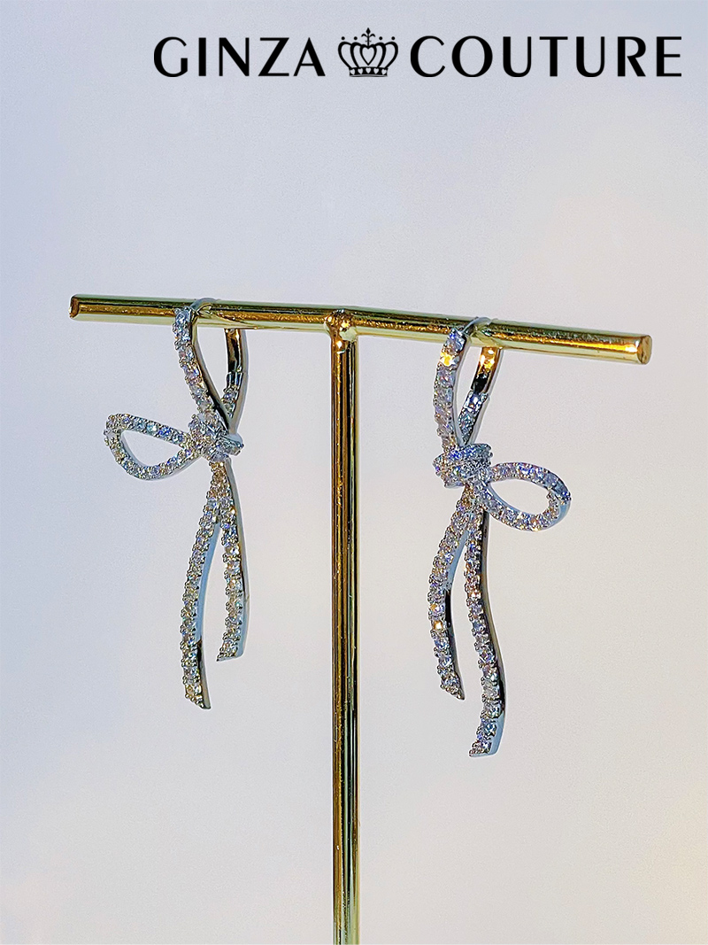[ジュエリー][ピアス]シルバー・ストーン・リボン・・ハギーピアス[即日発送] [JP3950]