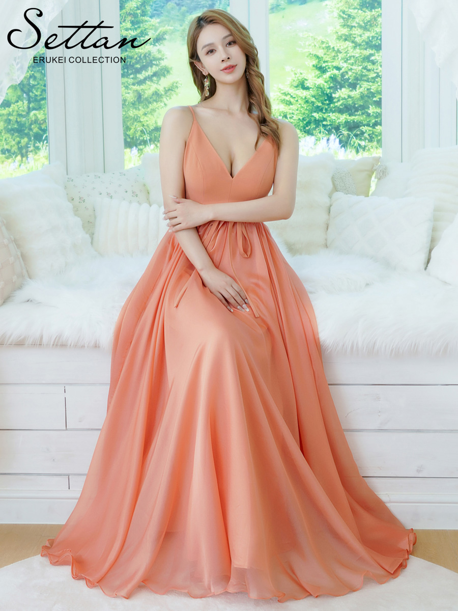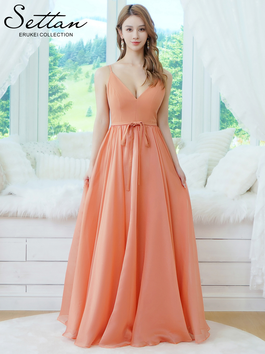 [送料無料][SETTAN]オレンジ・アンゴラレッド・グリーン・ホワイト・シフォン・ワンカラー・キャミソール・リボンベルト・Aライン・フレア・ロングドレス[即日発送][大きいサイズあり] [S36118-1]