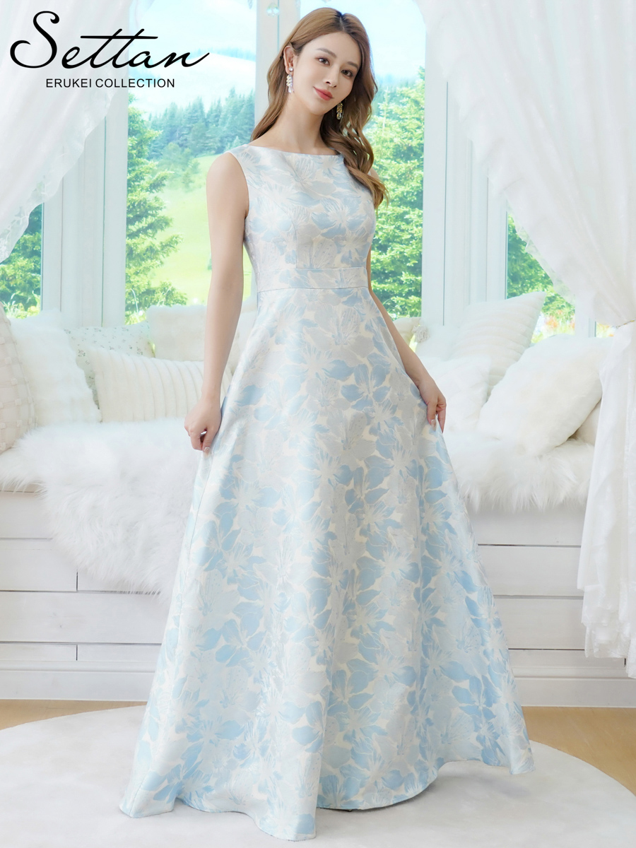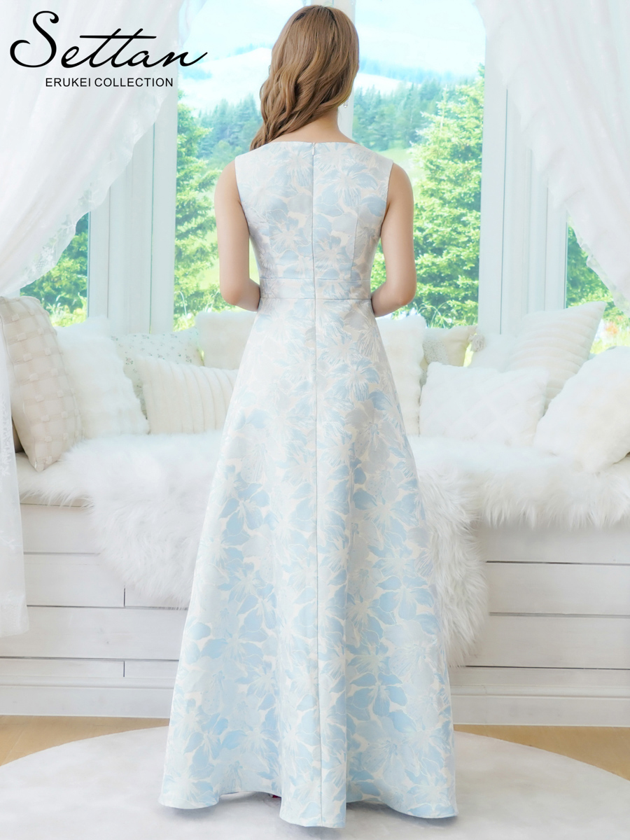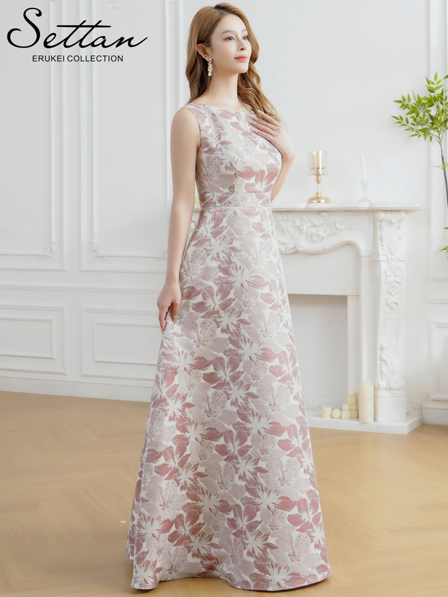[送料無料][SETTAN]ピンク×シルバー・ブルー・ネイビー・ピンク×ゴールド・花柄・ラメ・ノースリーブ・フレア・Aライン・ロングドレス[即日発送][大きいサイズあり] [S25381]