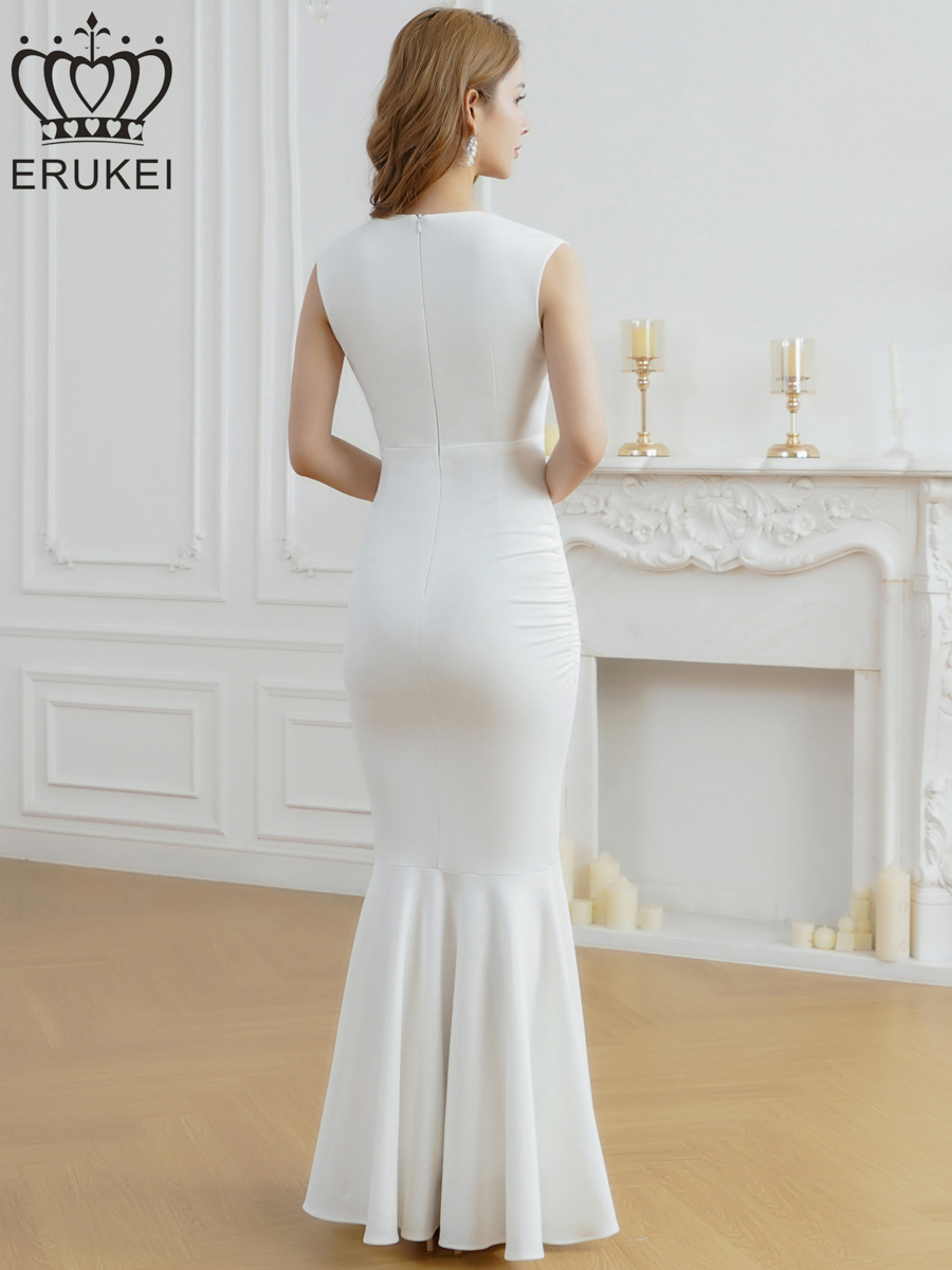 [送料無料][ERUKEI]ロイヤルブルー・ホワイト・ネイビー・ワンカラー・シンプル・胸元スリットカット・ノースリーブ・ストレッチ・タイト・マーメイド・ロングドレス[即日発送][大きいサイズあり]