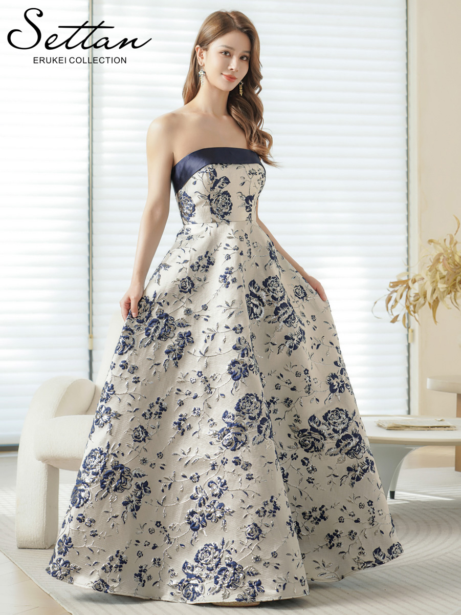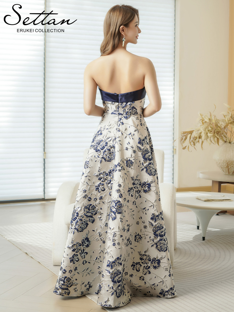 [送料無料][SETTAN]シルバー×ネイビー・ベア・ジャガード・金糸・花柄・Aライン・切替・フレア・ロングドレス[即日発送][大きいサイズあり] [S37511]