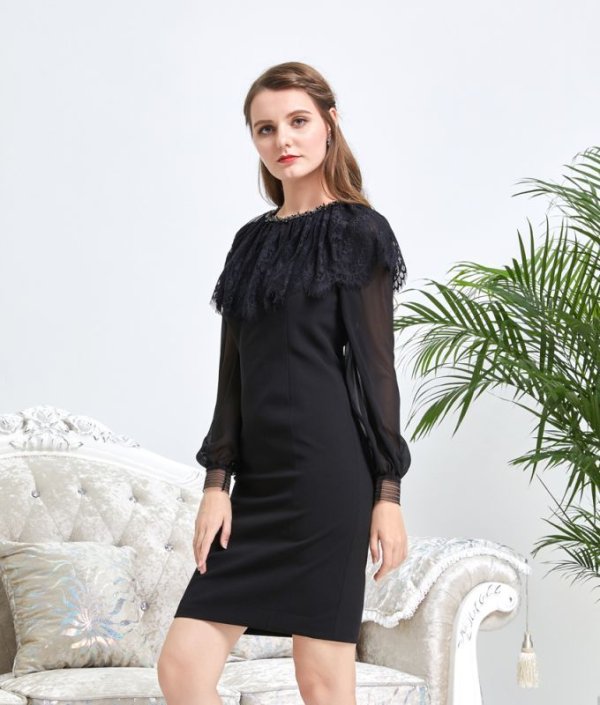 [送料無料][ERUKEI]ショルダーレース・首元ビジュー・ブラック・ホワイト・ミニドレス・ワンピース[即日発送][大きいサイズあり]