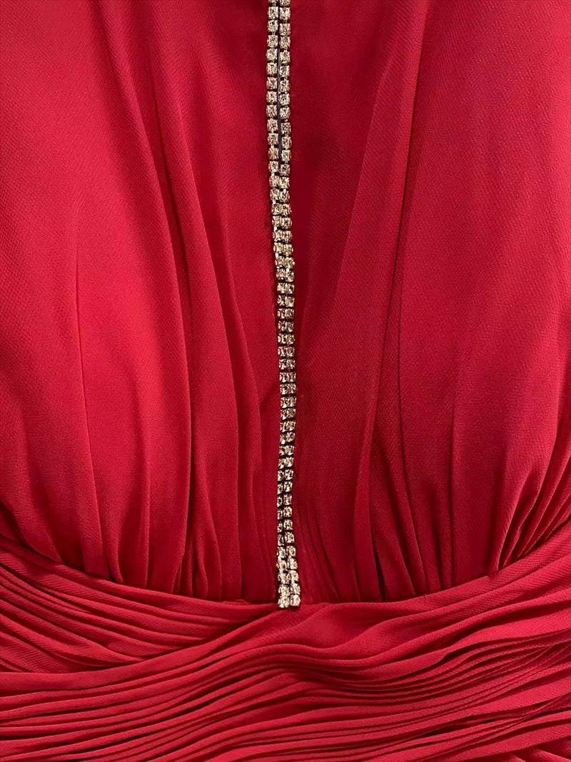 [送料無料][SETTAN]ホワイト・イエロー・レッド・ワンカラー・シフォン・胸元カット・ラインストーン・キャミソール・エレガント・Aライン・ロングドレス[即日発送][大きいサイズあり]