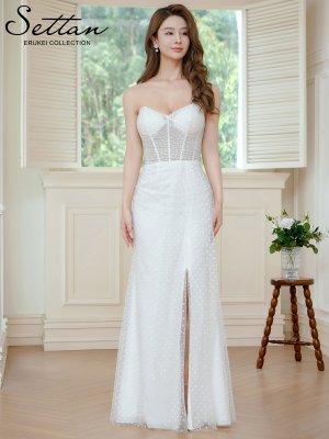 [送料無料][SETTAN]ホワイト・ピンク×ホワイト・ブラック×ホワイト・チュールレース・ベアトップ・ビスチェ・ハート・スリット・マーメイド・ロングドレス[即日発送][大きいサイズあり] [S36103-2]