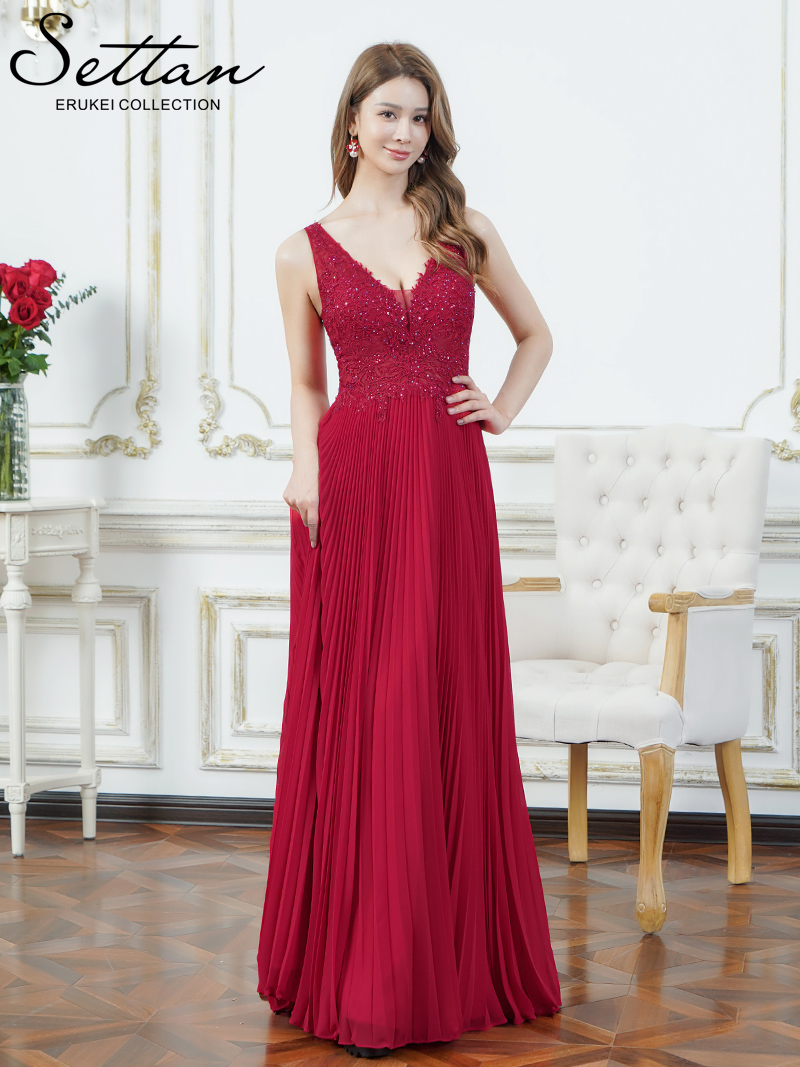 [送料無料][SETTAN]イエロー・レッド・ホワイト・ノースリーブ・ラメ・ラインストーン・プリーツ・刺?・レース・シアー・エレガント・Aライン・ロングドレス[即日発送][大きいサイズあり]