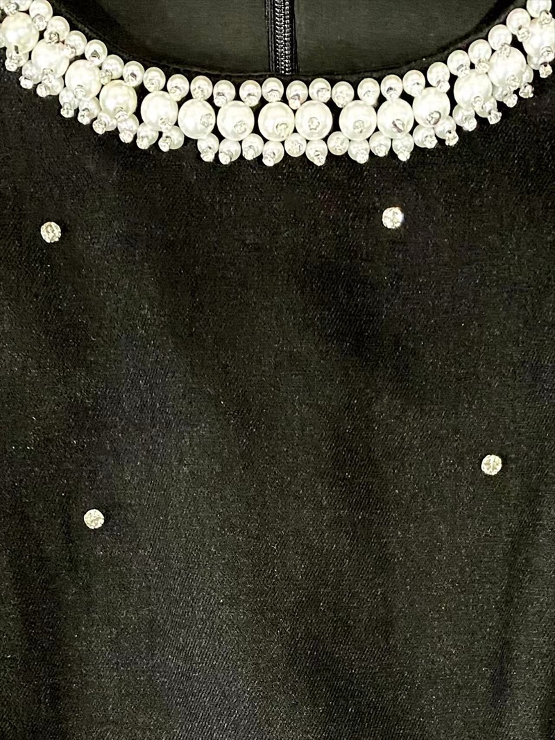 [送料無料][GINZA COUTURE]アイボリー・ピンク・ブラック・半袖・パール・ラインストーン・Aライン・ミニドレス・ワンピース[即日発送][大きいサイズあり]