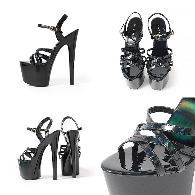 [送料無料][COMEX]ベージュ・ブラック・17cmヒール・軽量・2025新作・ハイヒール・厚底・ピンヒール・ストラップ・エナメル・サンダル [大きいサイズあり]