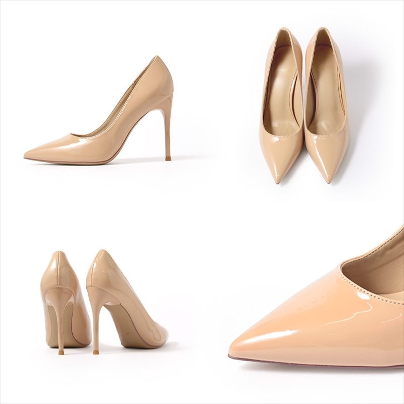 [送料無料][COMEX]プラチナドゥ・ピンクベージュ・ブラック・エナメル・25.5cmまで・ピンヒール・ポインテッドトゥ・10cmヒール・パンプス[即日発送]