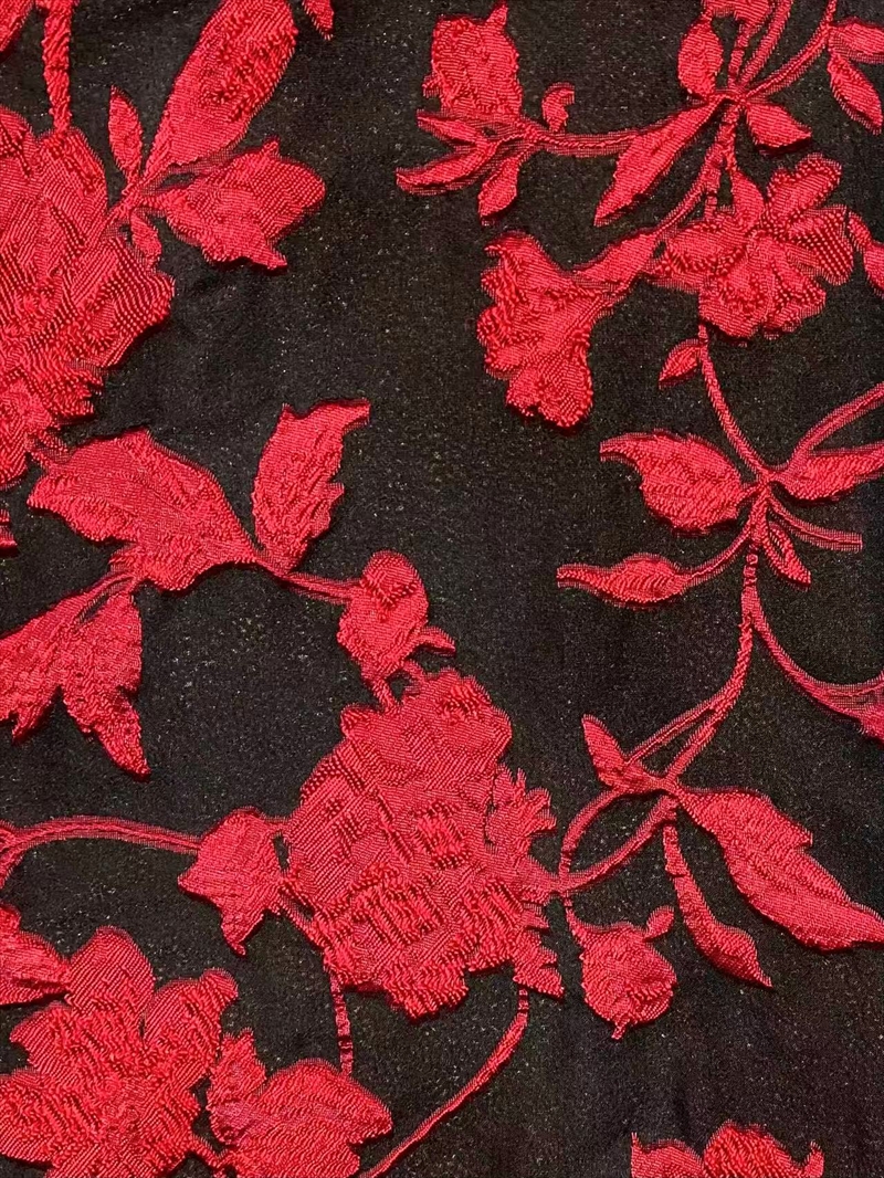 [送料無料][GINZA COUTURE]ホワイト・ブラック×ワインレッド・ジャガード・花柄・スリットネック・ノースリーブ・フィッシュテール・Aライン・ミディアムドレス・ワンピース[即日発送][大きいサイズあり]