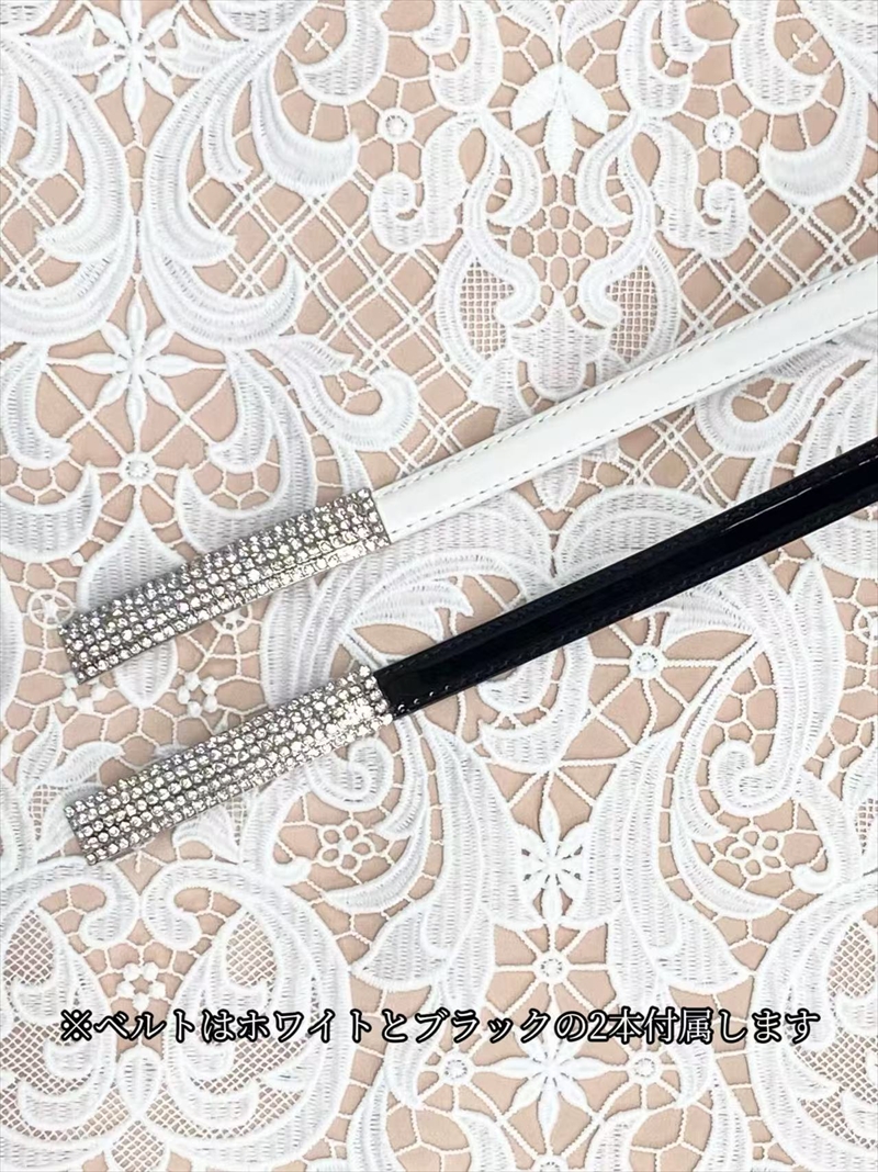 [送料無料][SETTAN]ホワイト・ケミカルレース・総レース・ビジューベルト・スリットネック・ノースリーブ・タイト・ミディアムドレス・ワンピース[即日発送][大きいサイズあり] [S25099]