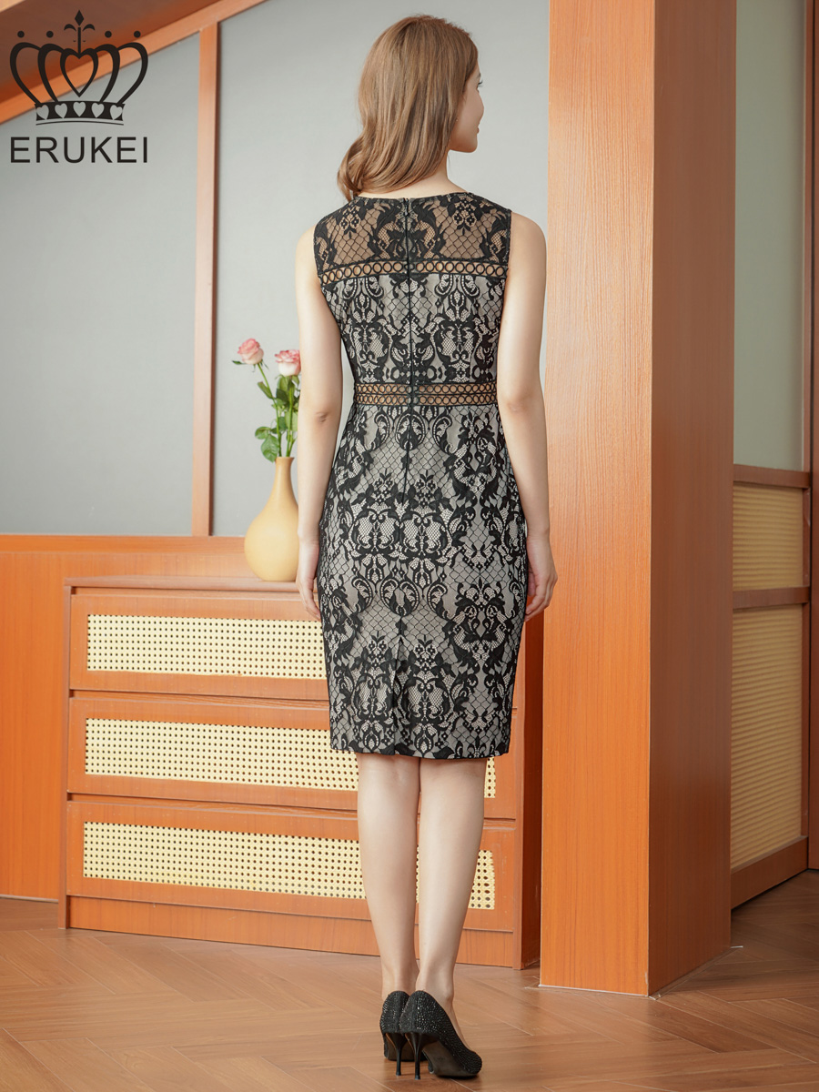 [送料無料][ERUKEI]ブラック・レッド・ホワイト・総レース・シアー・タイト・ミディアムドレス・ワンピース[即日発送][大きいサイズあり] [E25265-2]