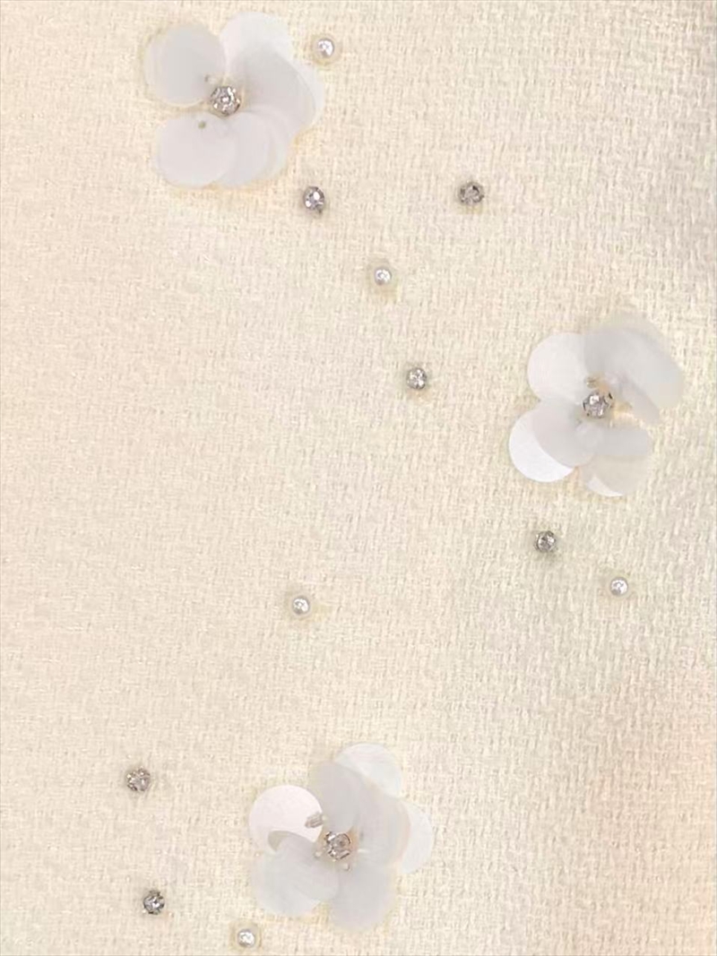 [送料無料][GINZA COUTURE]ピンク・アイボリー・ワンカラー・スプリングツイード・お花・スパンコール・ビーズ・ジャケット[即日発送][大きいサイズあり]