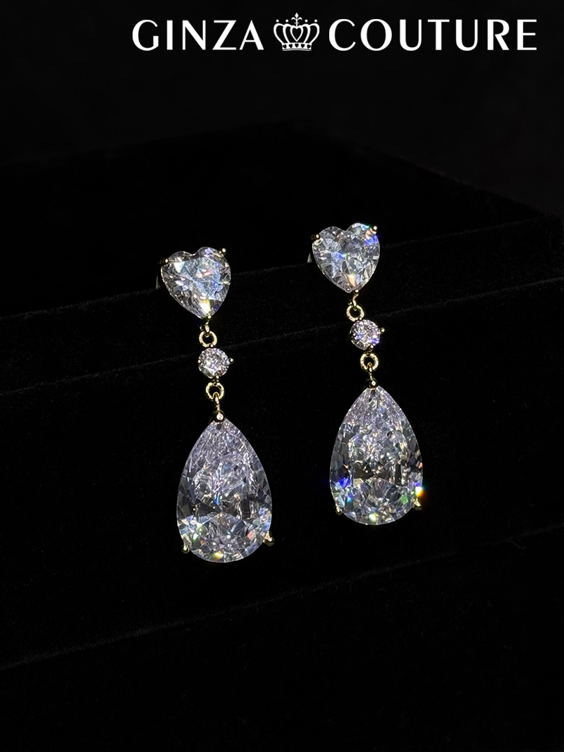 [ジュエリー][ピアス]ゴールド×クリア・ドロップストーン・ハート・スタッドピアス[即日発送] [JP3848]