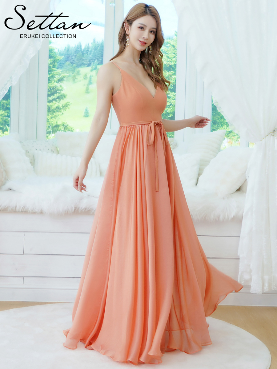 [送料無料][SETTAN]オレンジ・アンゴラレッド・グリーン・ホワイト・シフォン・ワンカラー・キャミソール・リボンベルト・Aライン・フレア・ロングドレス[即日発送][大きいサイズあり]