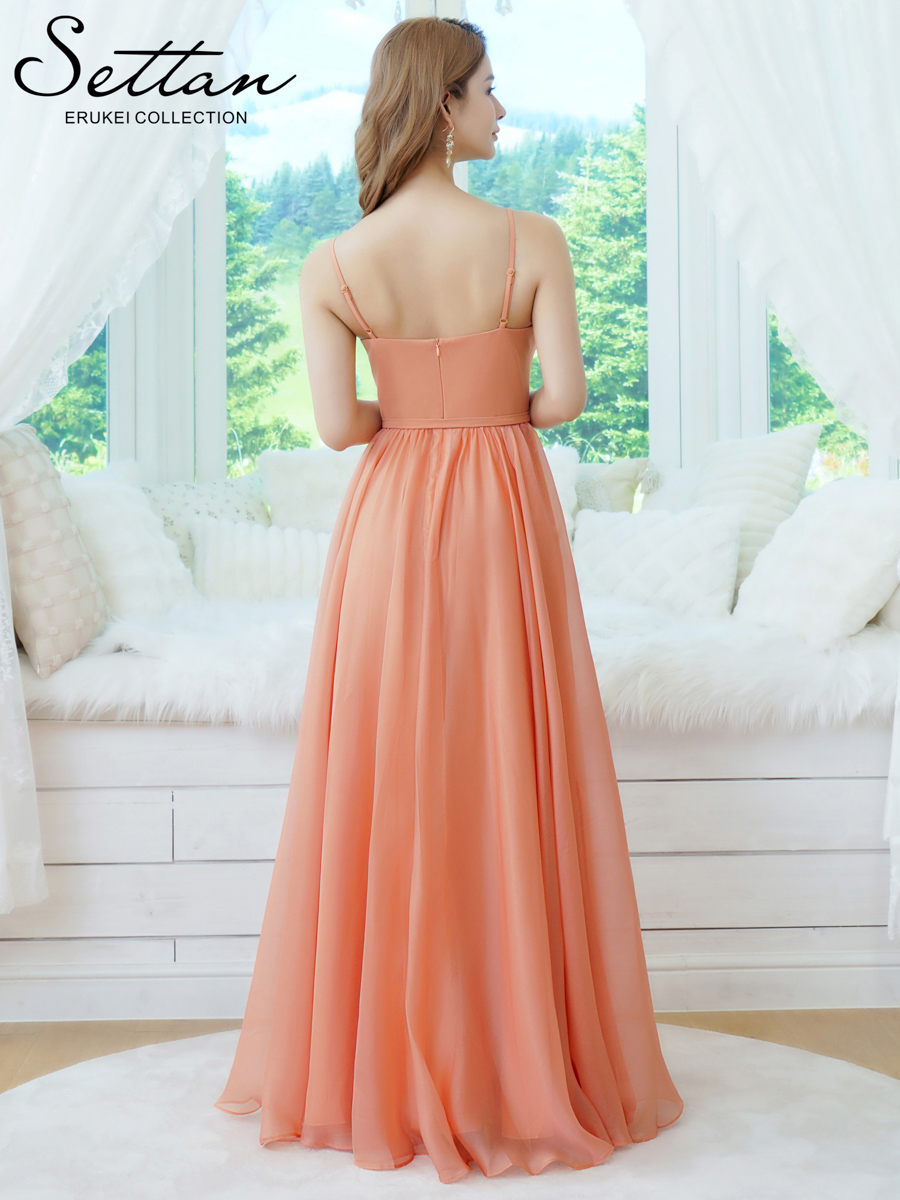 [送料無料][SETTAN]オレンジ・アンゴラレッド・グリーン・ホワイト・シフォン・ワンカラー・キャミソール・リボンベルト・Aライン・フレア・ロングドレス[即日発送][大きいサイズあり] [S36118-1]