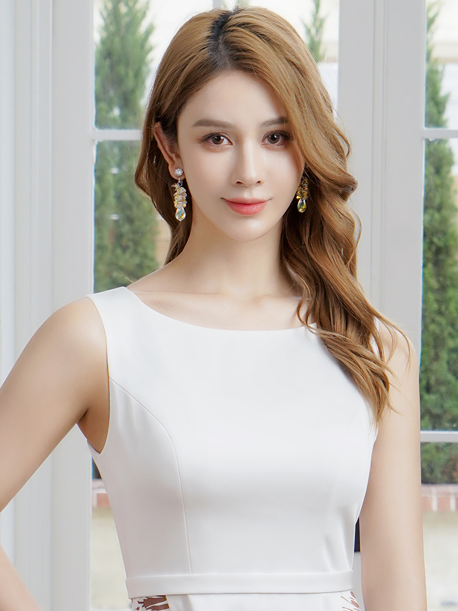 [送料無料][SETTAN]ホワイト×ブラウン・ノースリーブ・バイカラー・花柄・切替・ハイウエスト・フレア・Aライン・ロングドレス[即日発送][大きいサイズあり] [S25367]