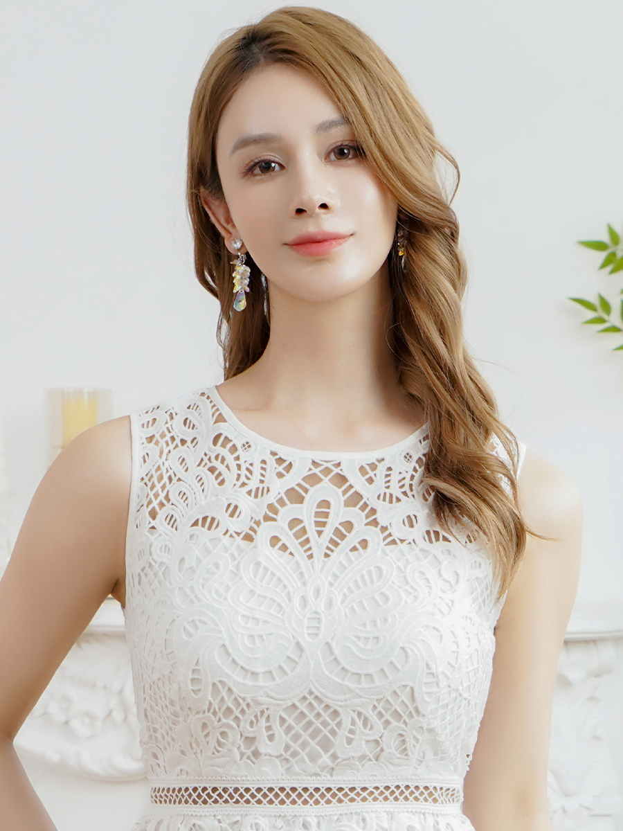 [送料無料][SETTAN]ホワイト・ベージュ・ブラック・総レース・切替・ノースリーブ・ペプラム・インナーミニ・タイト・ミディアムドレス・ワンピース[即日発送][大きいサイズあり] [S25206]